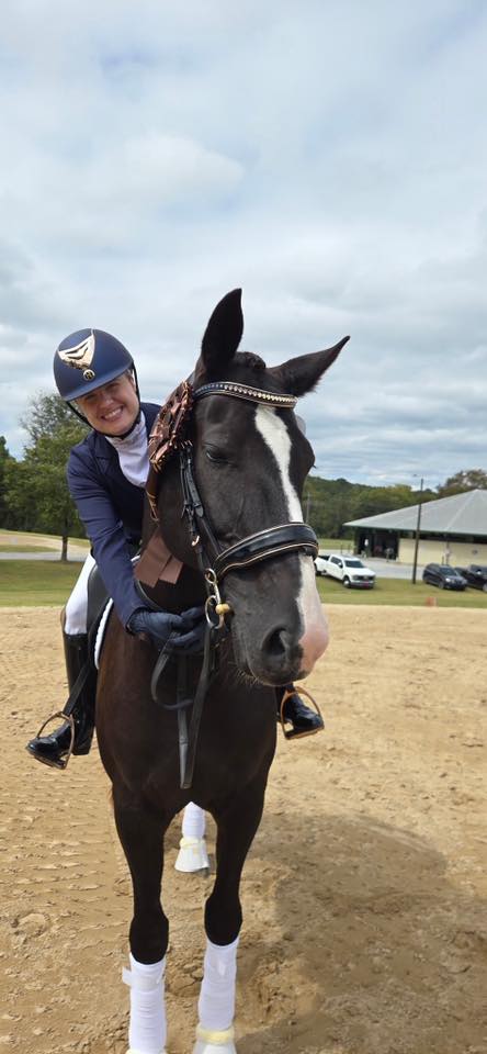 Introducing my kind, gentle, curious, and wonderful 5yo Oldenburg, Zenon’s Crusador! He was such a good boy at Region 3 Regionals, and we placed 3rd in our T3 AA Champs class! We’ve booked our travel to Ohio and can’t wait to continue our journey together. 💙💙💙 I am so proud to partner with this special boy! – Amanda Beth Castellone