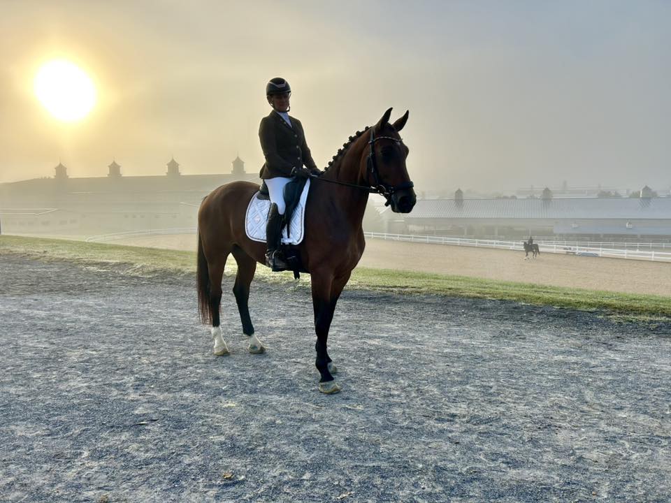 Switched regions this year so my first time at the Virginia Horse Center for Region 1 competition. The scenery was breathtaking. An 8 AM ride with the sun, just coming up over the mountains and fog starting to lift. Doesn’t get much better than that as far as a view from the centerline! – Michelle Hrnchar